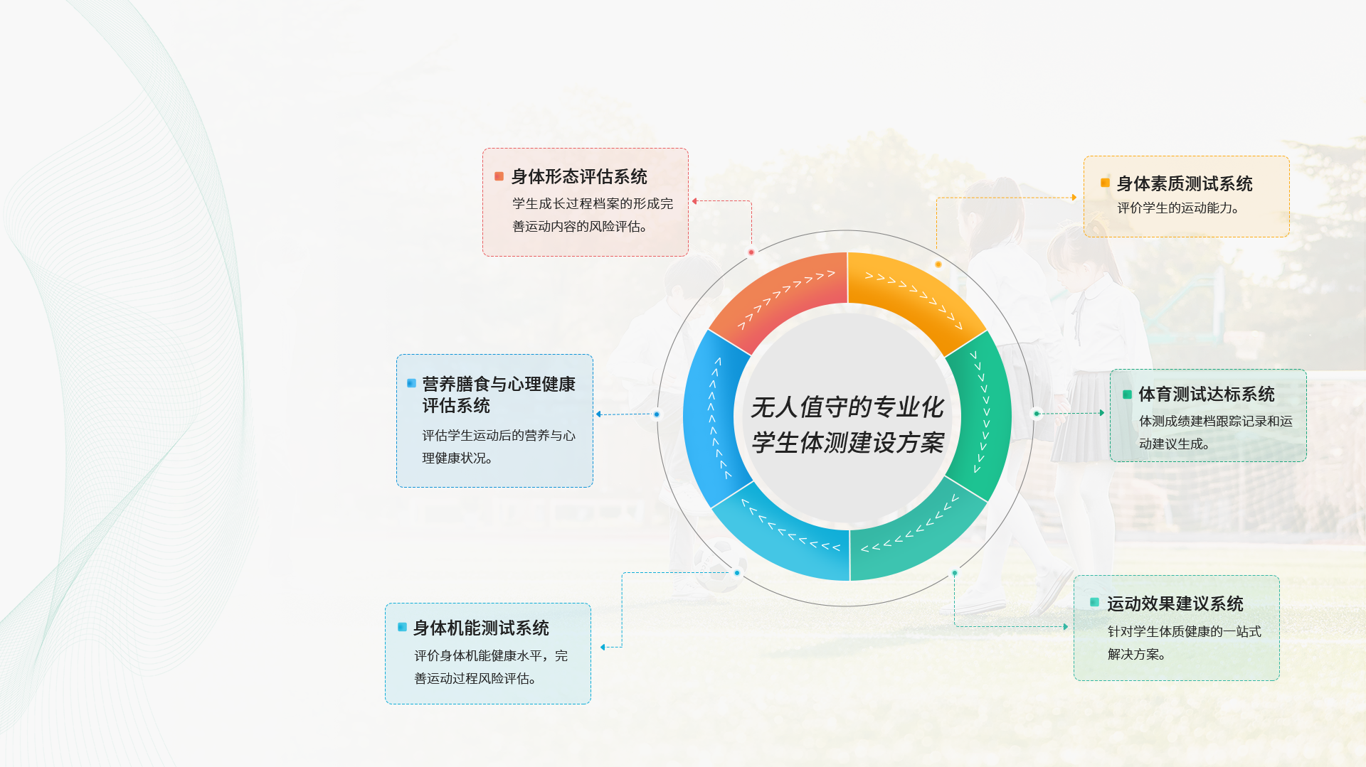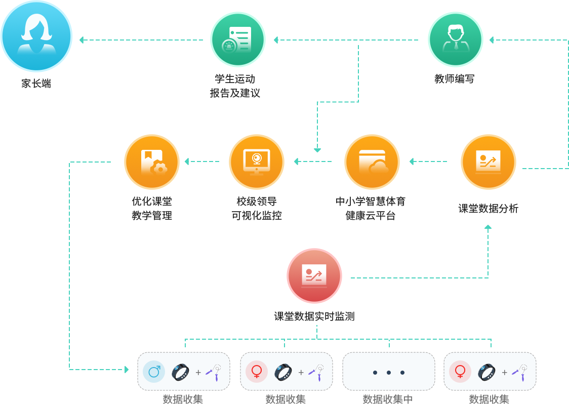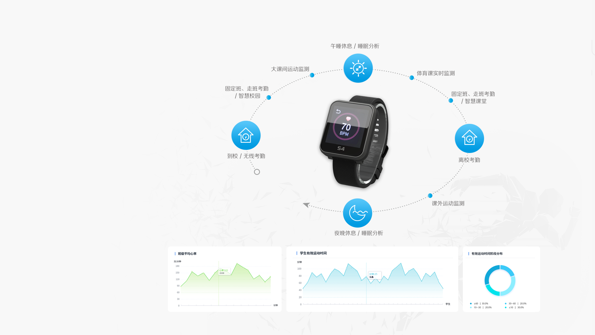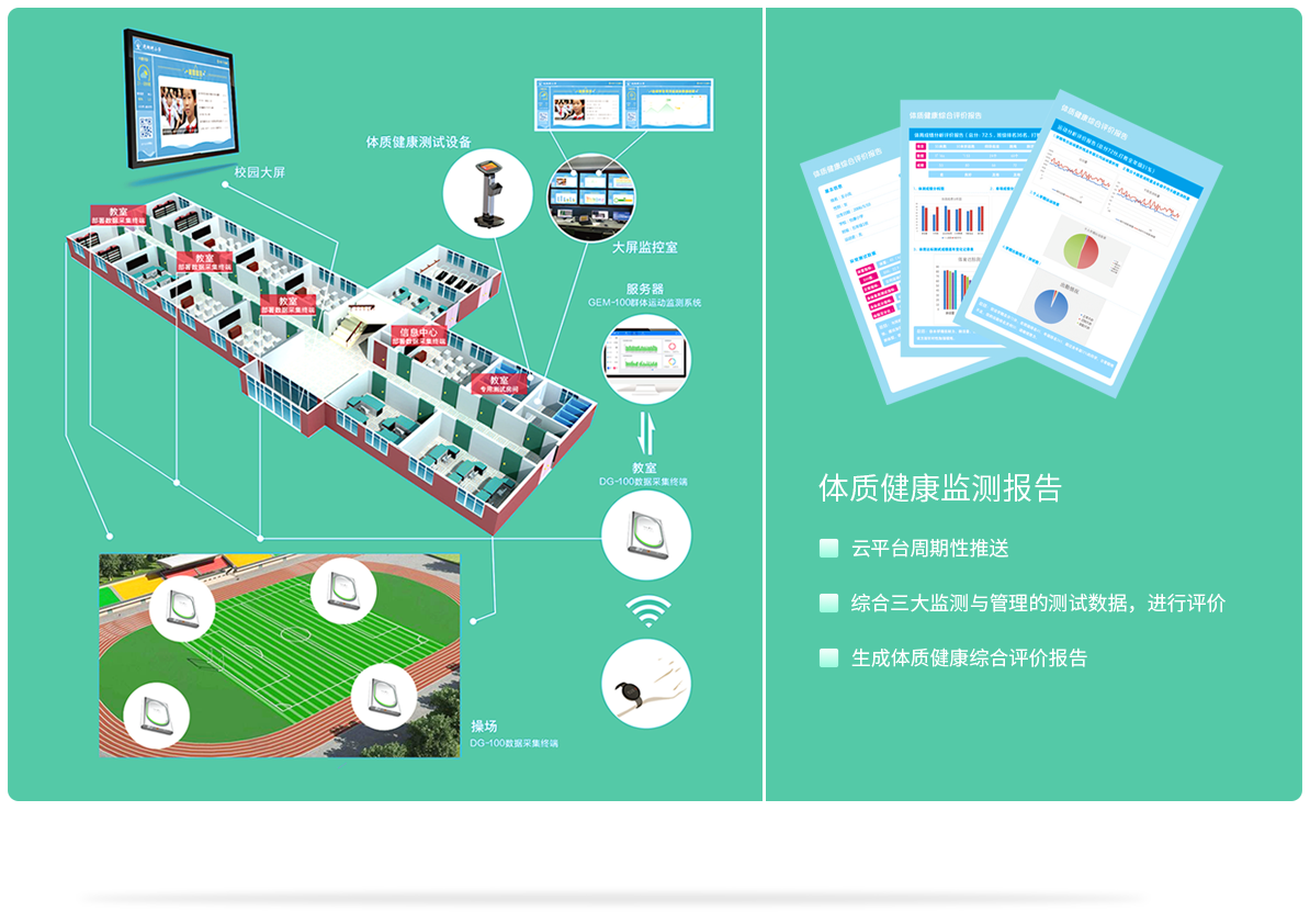 能实时、准确监测学生在日常、体育课中的运动数据,使学校达到科学指导学生锻炼的目的。